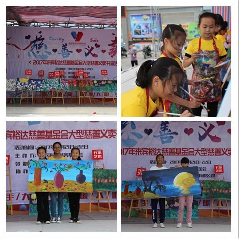 值得一提的是,今年的书籍义卖活动还邀请了来宾市新华书店、来宾市中汇大洋投资有限公司、广西鑫东成商贸有限公司、卡乐美术中心、星空动漫网咖一同参与协办。在10月21日的开幕仪式结束后,来自卡乐美术中心的小艺术家们以“爱暖人间”为主题,通过比赛作画的方式来支持慈善义卖活动。通过微信投票环节评选,最终选出的一二三等奖可以获得由来宾裕达慈善基金会提供的价值500元-100元不等的精美书籍。