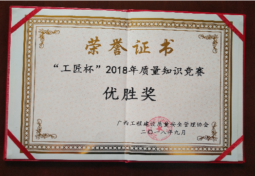 广西裕达工程有限公司喜获全区“工匠杯”2018年质量知识竞赛佳绩