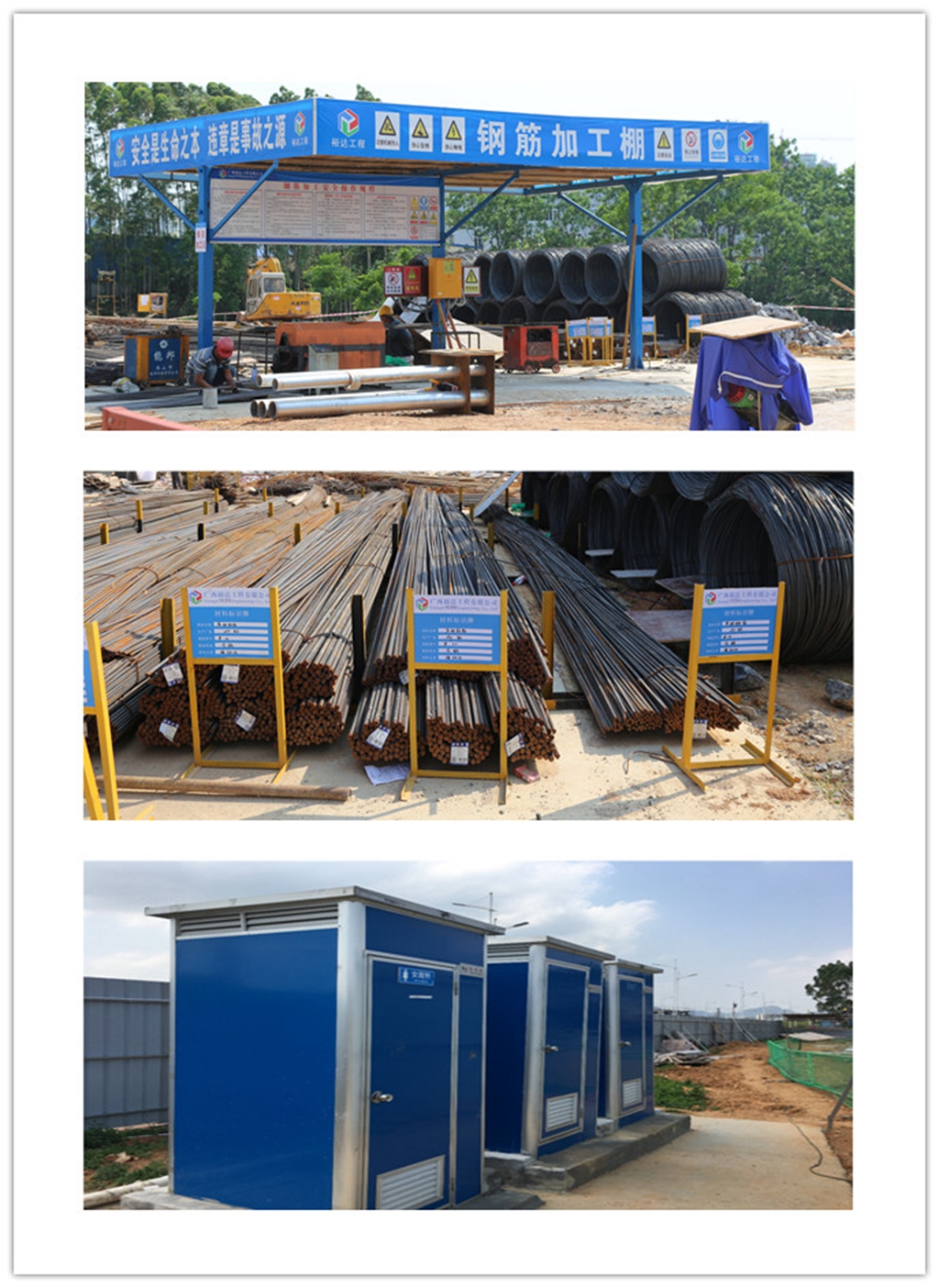 当天会议分为现场参观、座谈交流及点评总结等环节。首先,公司总经理权龙福带队前往中国移动广西公司来宾综合业务接入机房工程项目现场进行参观。参观中,项目负责人张双荣对现场各区域基本情况、施工进度、质量安全管控等逐一进行介绍。大家从现场介绍及现场参观相结合中更为直观感受该项目的各项流程运营情况。纵观整个项目现场,我们能醒目的看到:一是自动化的车轮自动冲洗钢平台,由系统感应,系统设置后,车辆通过钢平台,移动喷水冲洗,减少专人清理;二是定型钢筋加工棚,采用工字钢加工制作,宽度统一为6米,高度4米,分两层隔板防护,杆件连接,安全可靠,安装拆除方便,可多次周转使用;三是统一的“三”电箱,即总、分、配相统一规范,做到一机一闸;四是4个视频监控摄像头在不停的转动时刻监视不同的区域,监视无死角;五是方便、美观的移动式厕所,节能环保、易于移动等等。据了解,该项目应用BIM技术布置总平面布置图,准确计算场地建设临建工程的工程量及成本投入,并直观布置、体现三维效果。
