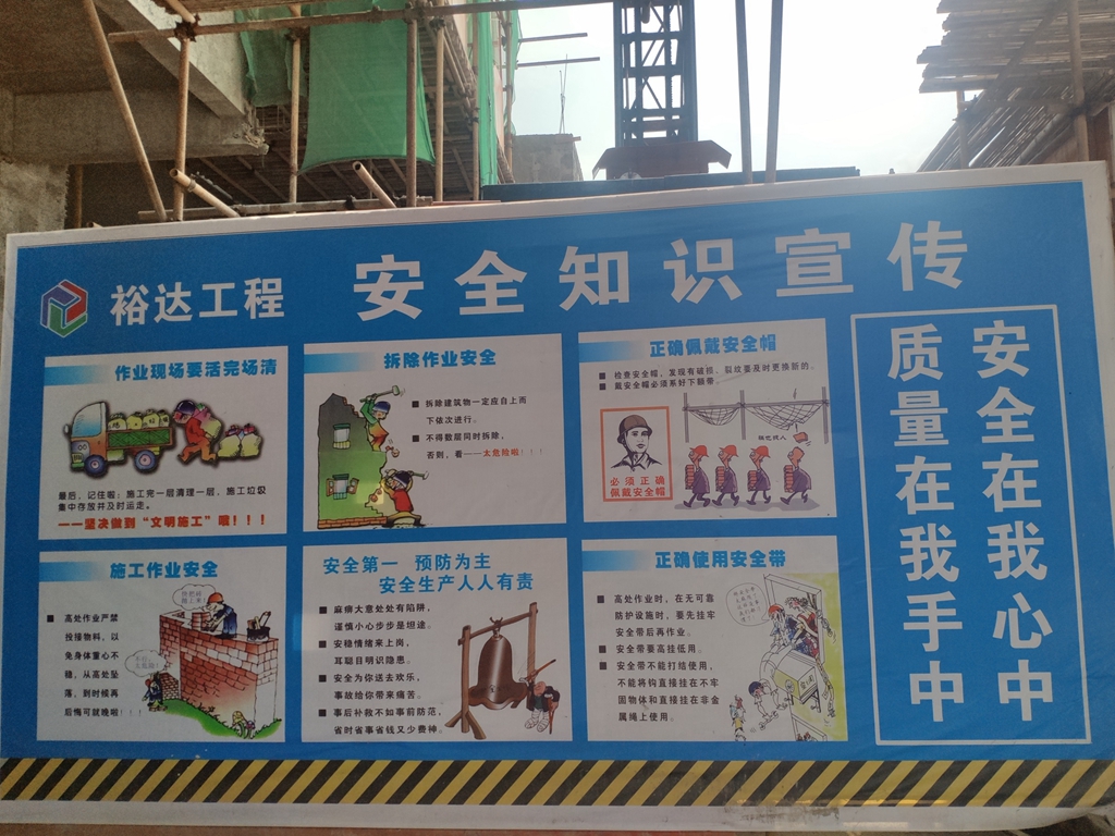 安全文明施工是一项常态化工作,项目部将继续严抓安全、狠抓文明,夯实安全文明管理基础工作,将安全文明施工标准化、常态化,秉持着裕达“以人为本,安全为天”的安全理念,不断追求工程品质提升。