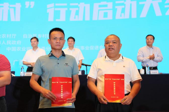 (图为万企兴万村签约仪式现场与六段村代表签约)