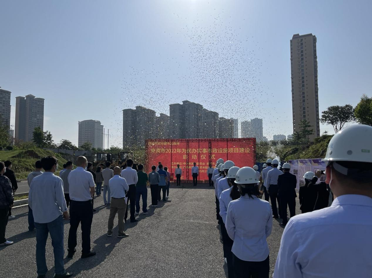 5月17日上午,2022年兴宾区背街小巷政治改造提升项目、来宾市2022年口袋文化公园建设项目、翠屏东路、盘古立交、滨江北路下穿高速等项目在兴宾区滨江小学附近举行开工仪式。来宾市副市长李光劭以及来宾市国有资本投资运营集团有限公司、广西裕达工程有限公司等相关领导人员共40余人参加启动仪式。