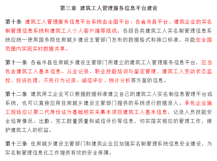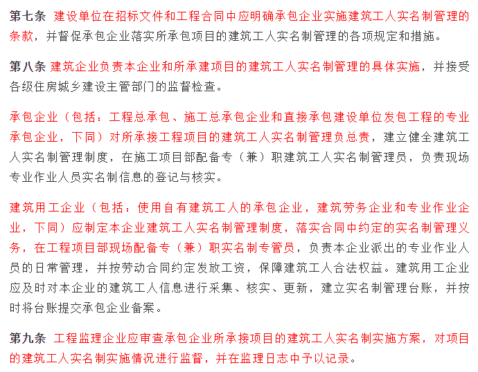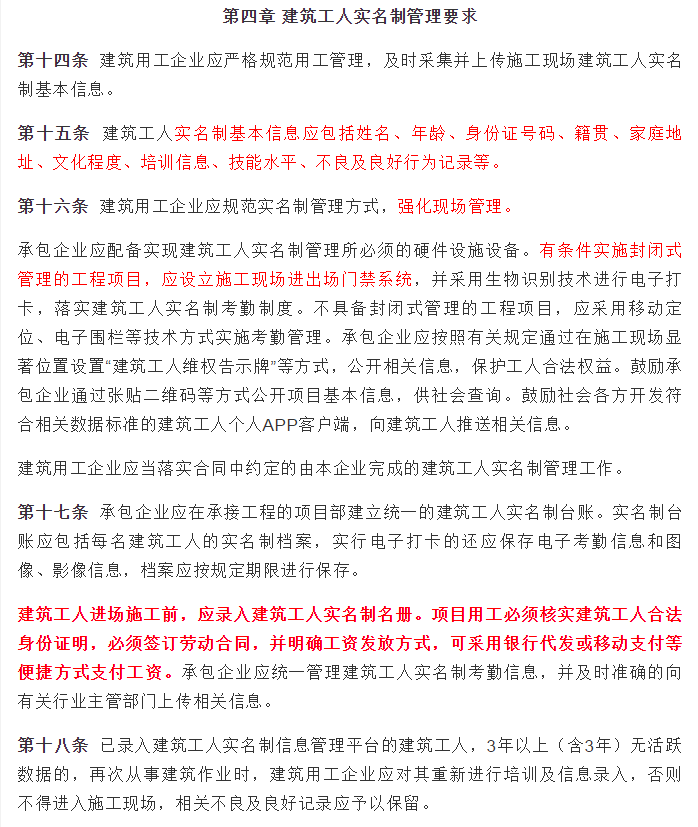 强化监管、规范用工,首当其冲的就是摸清底数。过去,由于用工季节性强、工种转换快、人员流动性大,建筑业用工情况有时成了“糊涂账”。推行实名制,将建筑工人的身份、文化程度、培训经历、技能水平、行为记录、权益保障等信息登记入网、建立台账后,政府部门就能拿着“透视镜”看行业,精细化管理也才有了可能。