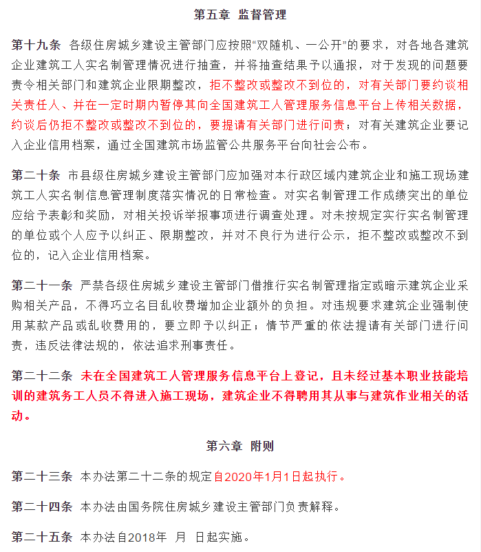 根据《办法》,到2020年,建筑工实名制将在我国全覆盖。届时,未在全国建筑工人管理服务信息平台上登记,且未经过基本职业技能培训的人员不得进入施工现场、从事建筑活动。相信“数据天网”成型之后,用工再有什么“猫腻”,工地再出现“编外人员”,上网一查便能发出“警报”。这将倒逼建筑企业和用工单位自觉加强内部管理和技能培训,引领农民工逐步转型为现代技术工人,进而提高建筑业的竞争力。