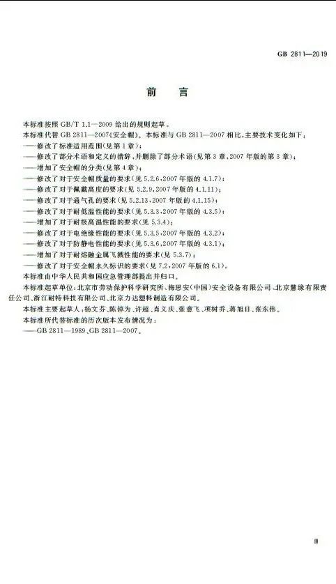 相比较于旧版GB2811-2007,新版安全帽标准GB2811-2019《头部防护 安全帽》做出了如下修改: