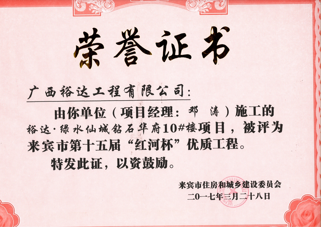 2017年来宾市第十五届“红河杯”优质工程