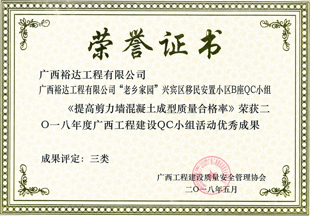 2018年度广西工程建设QC小组活动优秀成果