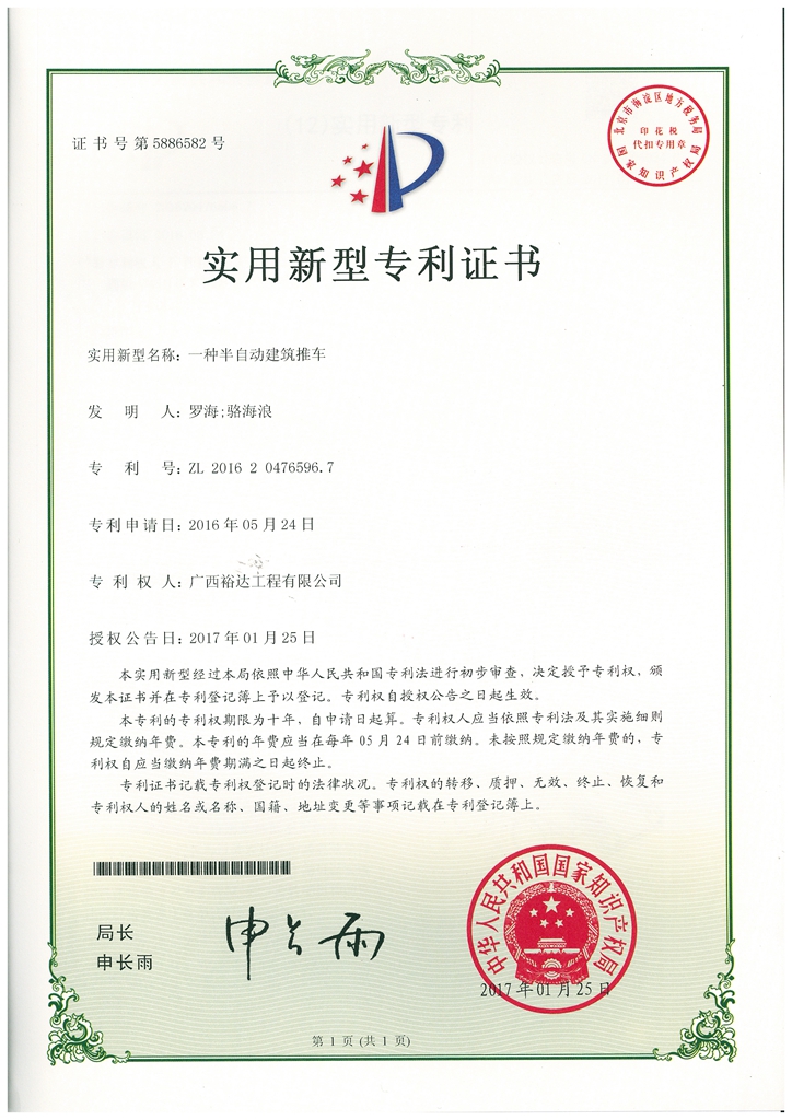 2017年实用新型专利证书(一种城市绿化垃圾桶)